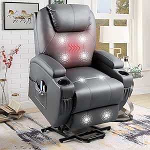 Yeshomy Power Lift Recliner Chair With Massage And Heating Functions Pu Leather Sofa With Remote Control And Two Cup Holders Suitable For Living Room Gray Everything Else Amazon Com