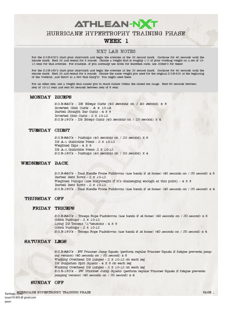 Hurricane Hypertrophy Training Phase Week 1 Pdf Earthquakes Recreation